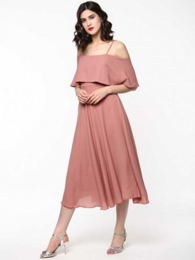 Women Fit and Flare Pink Dress